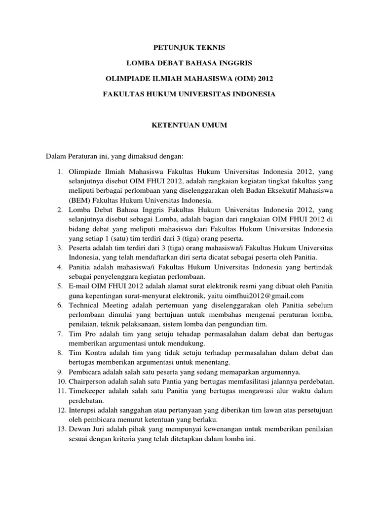 Petunjuk Teknis Debat Bahasa Inggris Pdf