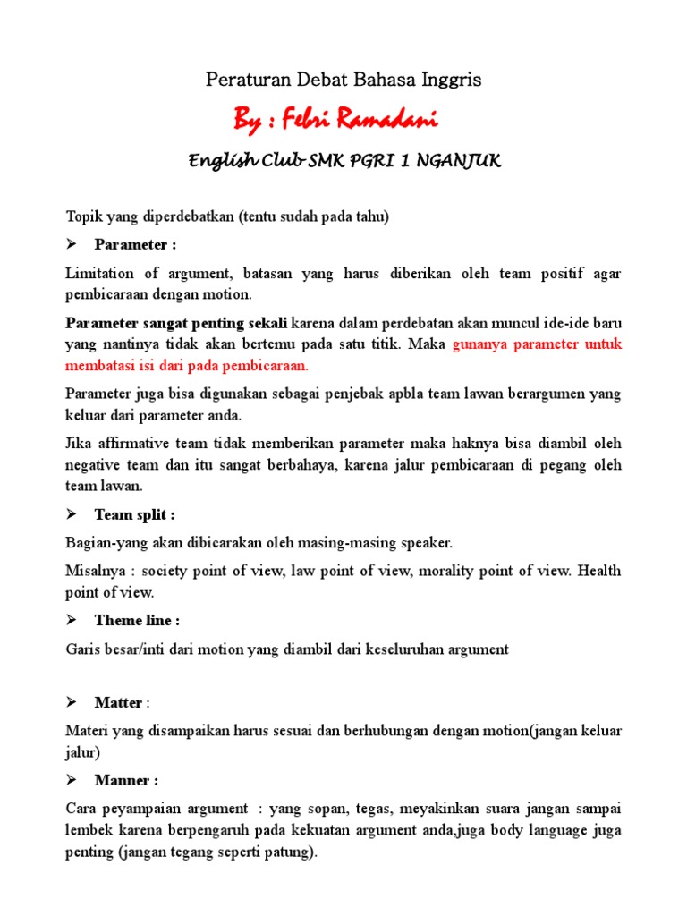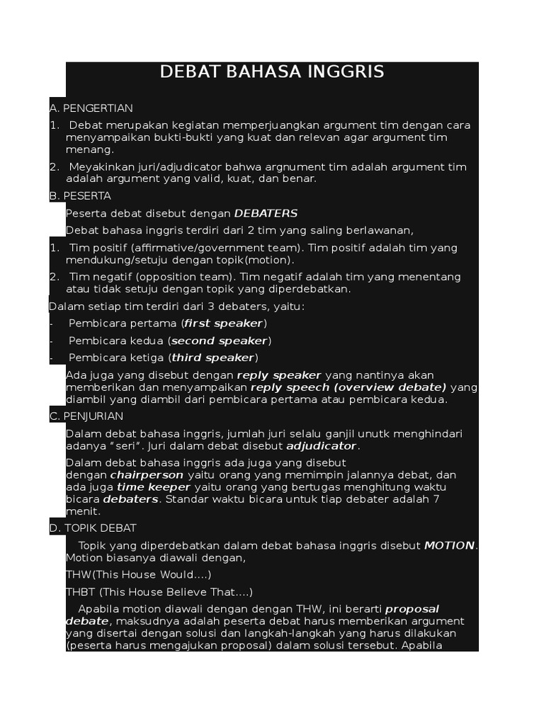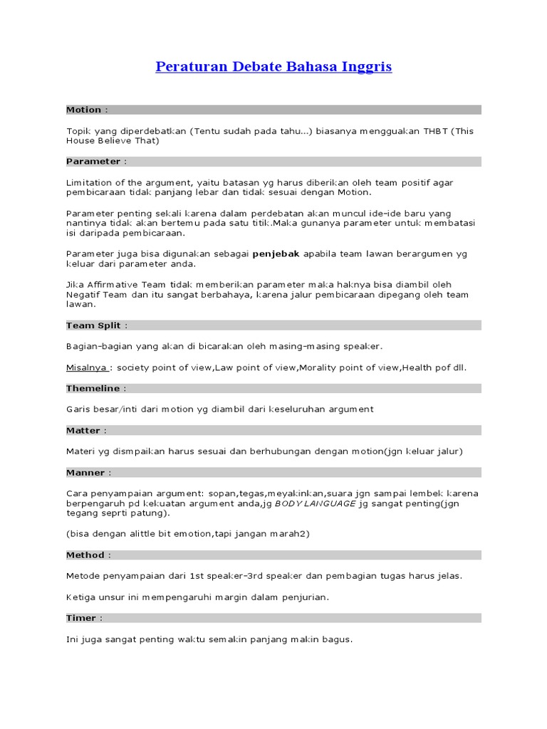 Peraturan Debate Bahasa Inggris Pdf